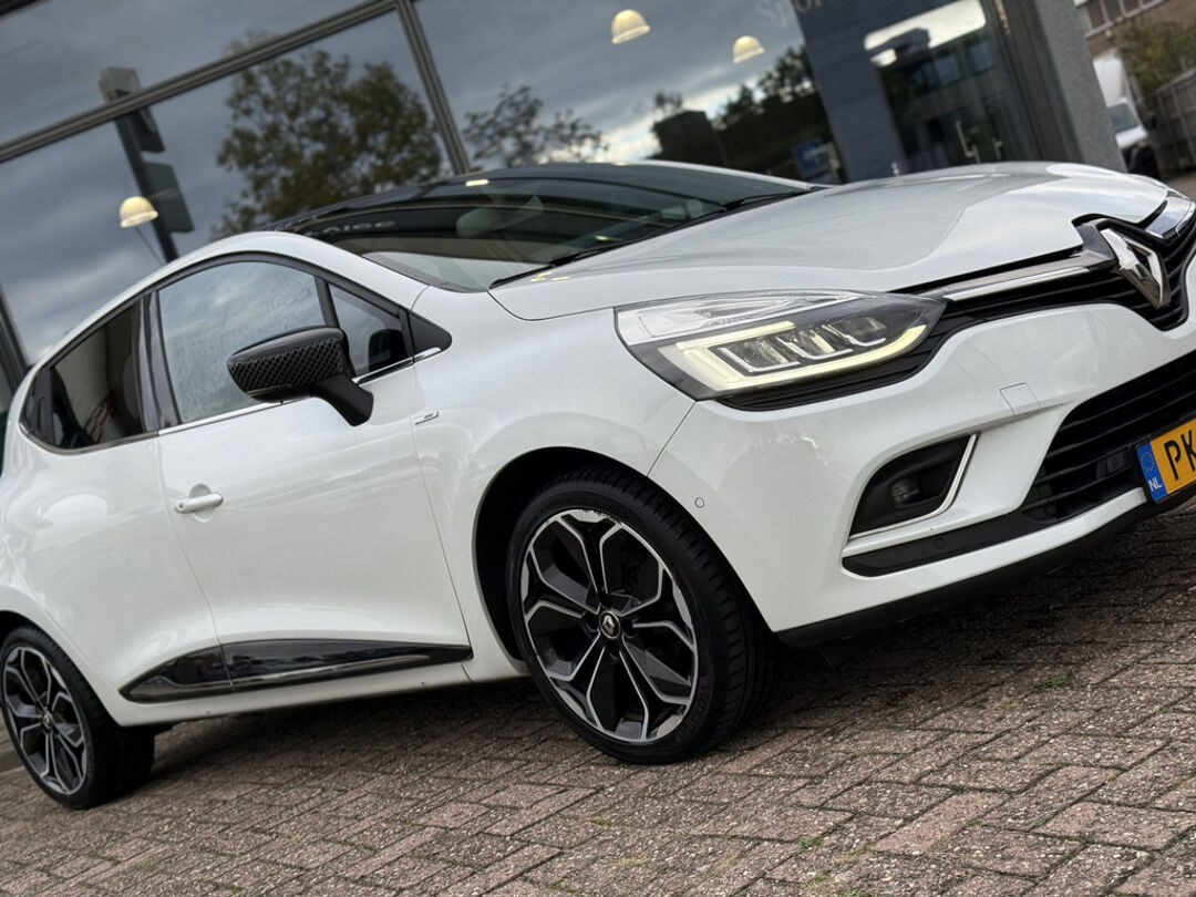 Deze zeer complete en goed onderhouden Renault Clio 0.9 TCe Bose uitvoering is o.a. uitgerust met: Achteruitrijcamera, Parkeersensoren voor en achter, Automatisch geregelde airconditioning, Bose premium Audiosysteem, Navigatiesysteem, Cruise control + Snelheidsbegrenzer, Armsteun, Elektrisch verstelbare + inklapbare buitenspiegels, Automatisch dimmende binnenspiegel, Privacy glass achter, Middenarmsteun, Bluetooth telefoonsysteem, Lichtmetalen wielen 17", Elektrisch bedienbare ramen voor en achter, Achterbank in delen neerklapbaar, Stuurbekrachtiging, enz .....